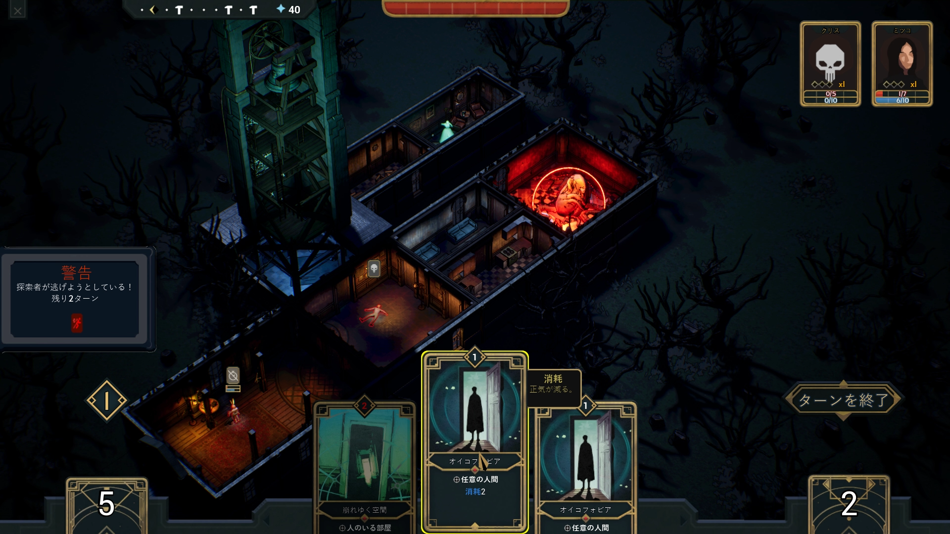デモ版プレイの感想ですが自分は初めてやるタイプのゲームで、マンションを構築してカードで訪問者を恐怖にして殺すことでエキスを集めそのエキスでマンションを強化していくゲームです。
